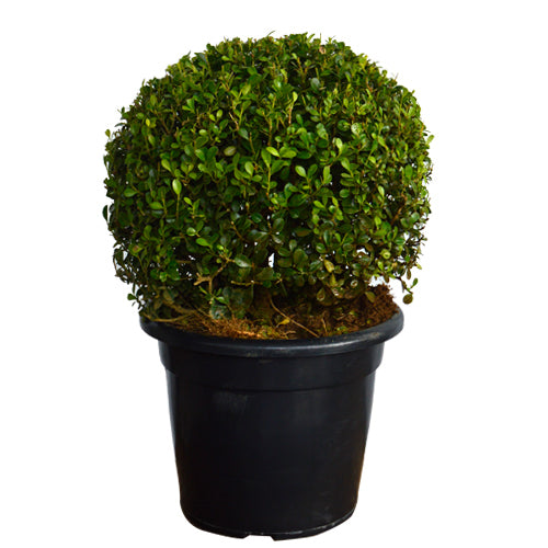 Arbusto de folhas perenes com folhagem densa e verde escura. Prefere luz solar plena a sombra parcial. A rega é moderada, permitindo que o solo seque levemente entre as regas, geralmente a cada 1-2 semanas. É comumente usado em jardinagem para criar cercas vivas, topiaria e bordas de jardins devido à sua folhagem compacta e facilidade de manutenção.